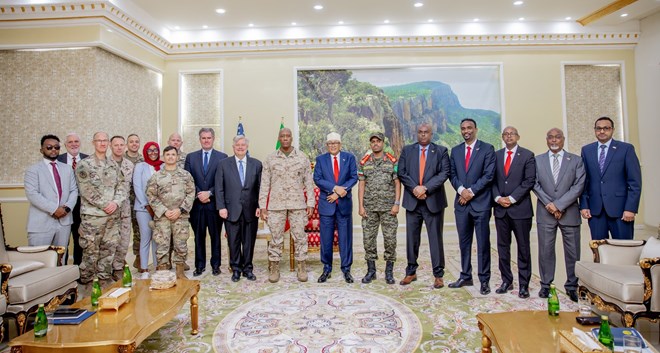 هرجيسا- قام وفد أمريكي رفيع المستوى برئاسة السفير الأمريكي لدى الصومال، ريتشارد رايلي، وقائد القيادة الأمريكية في أفريقيا (أفريكوم)، الجنرال مايكل لانغلي، برفقة كبار المسؤولين