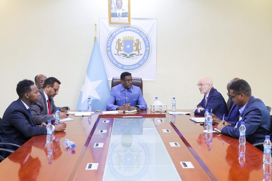 مقديشو- عقد وزير الأمن الداخلي الصومالي، عبد الله شيخ إسماعيل (فرتاغ)، في مقديشو يوم الأحد، اجتماعا رفيع المستوى مع الممثل الخاص للأمم المتحدة في الصومال