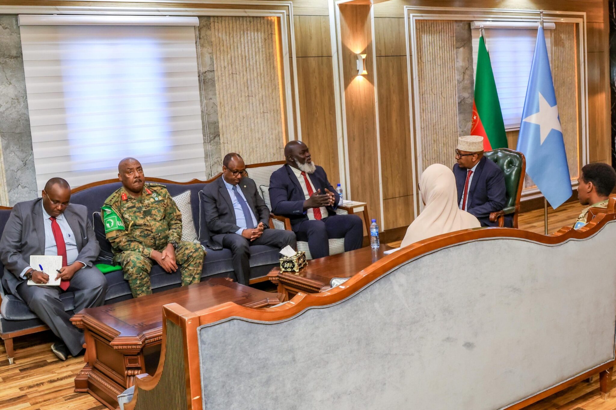 مقديشو- استضاف وزير الدفاع في الحكومة الصومالية، أحمد معلم فقي، اليوم كبار مسؤولي بعثة الاتحاد الأفريقي لدعم الاستقرار في الصومال لمناقشة تعزيز التعاون في مكافحة