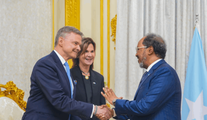 مقديشو- التقى الرئيس الصومالي حسن شيخ محمود، وفدا رفيع المستوى من هيئة العمل الخارجي الأوروبية في القصر الرئاسي، لمناقشة تعزيز التعاون بين الصومال والاتحاد الأوروبي.