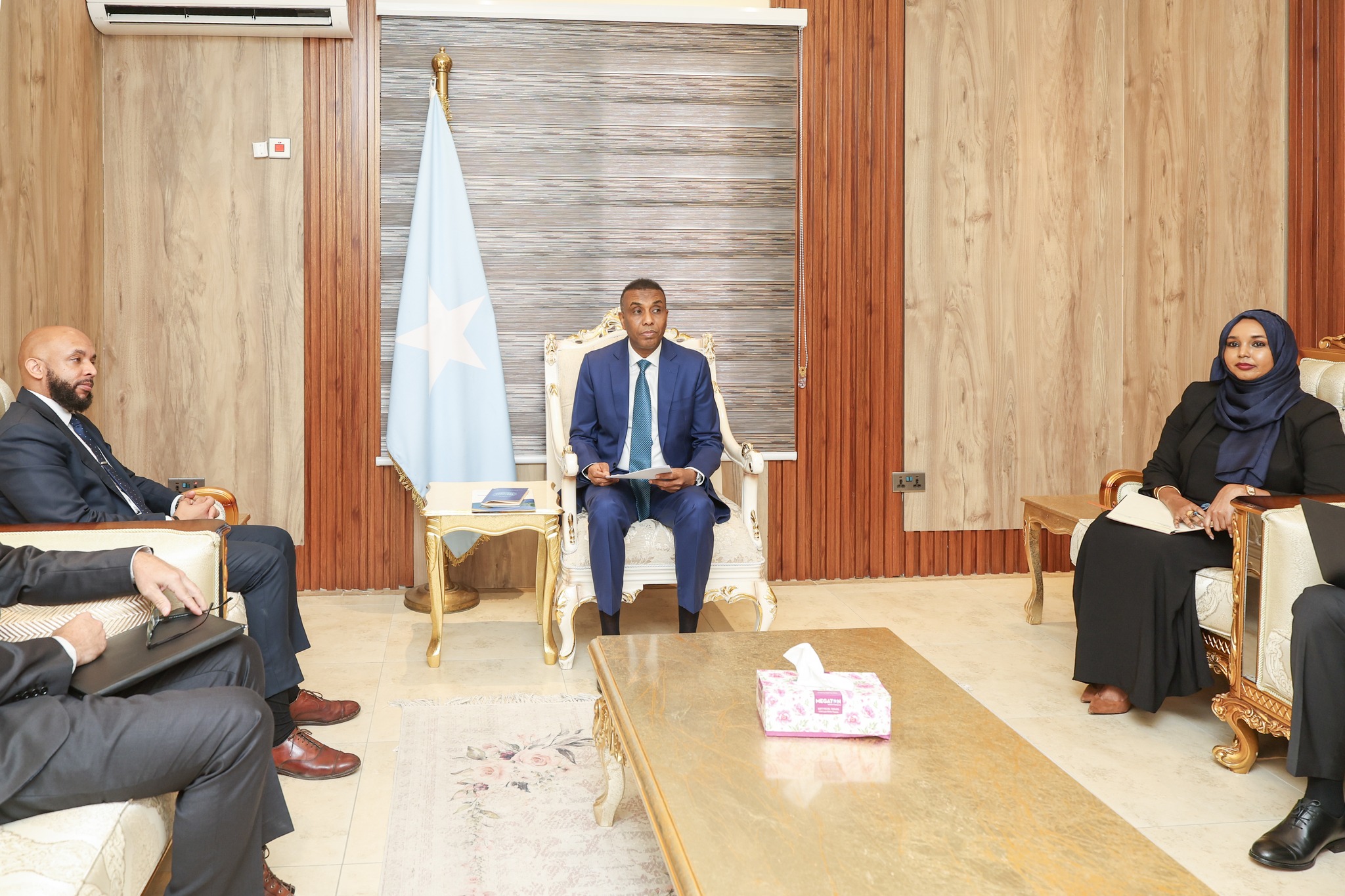 مقديشو- عقد رئيس وزراء الحكومة الفيدرالية الصومالية، حمزة عبدي بري، اجتماعا مع القائم بأعمال سفير الولايات المتحدة لدى الصومال، جاستن ديفيس. تناول الاجتماع بين الجانبين