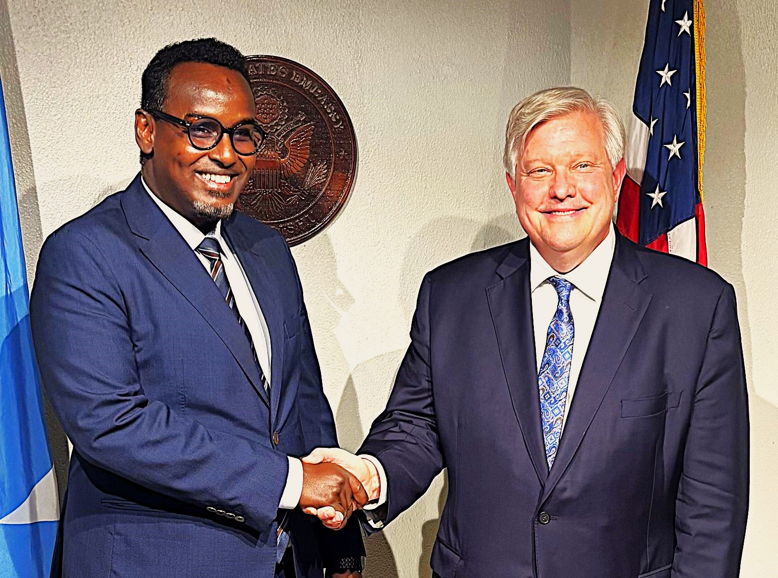 مقديشو- التقى السفير الأمريكي لدى الصومال، ريتشارد رايلي، بالنائب العام الصومالي، محمد محمود، يوم الاثنين، لتعزيز التعاون في مكافحة غسل الأموال وتمويل الإرهاب. ركّز الاجتماع